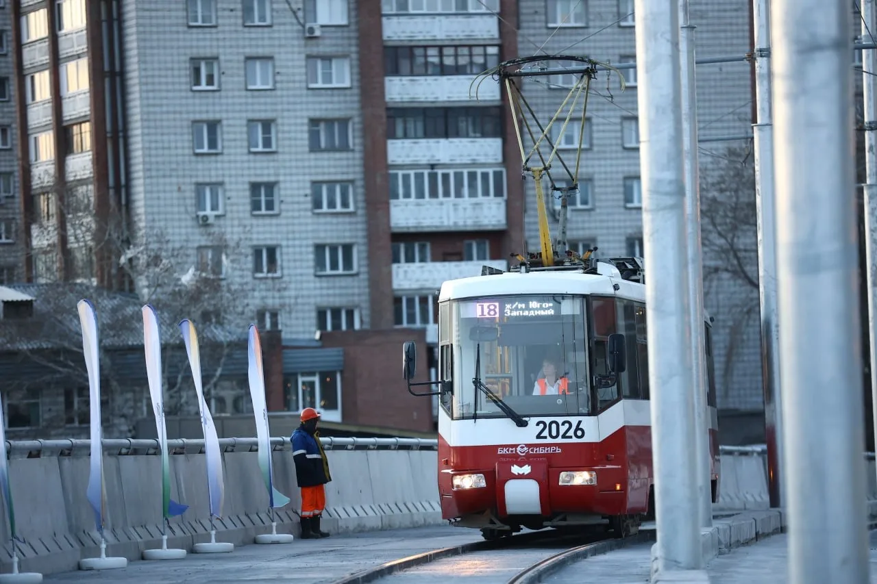 В Новосибирске открыли эстакаду для трамваев, соединяющую улицы Широкую и Ватутина.