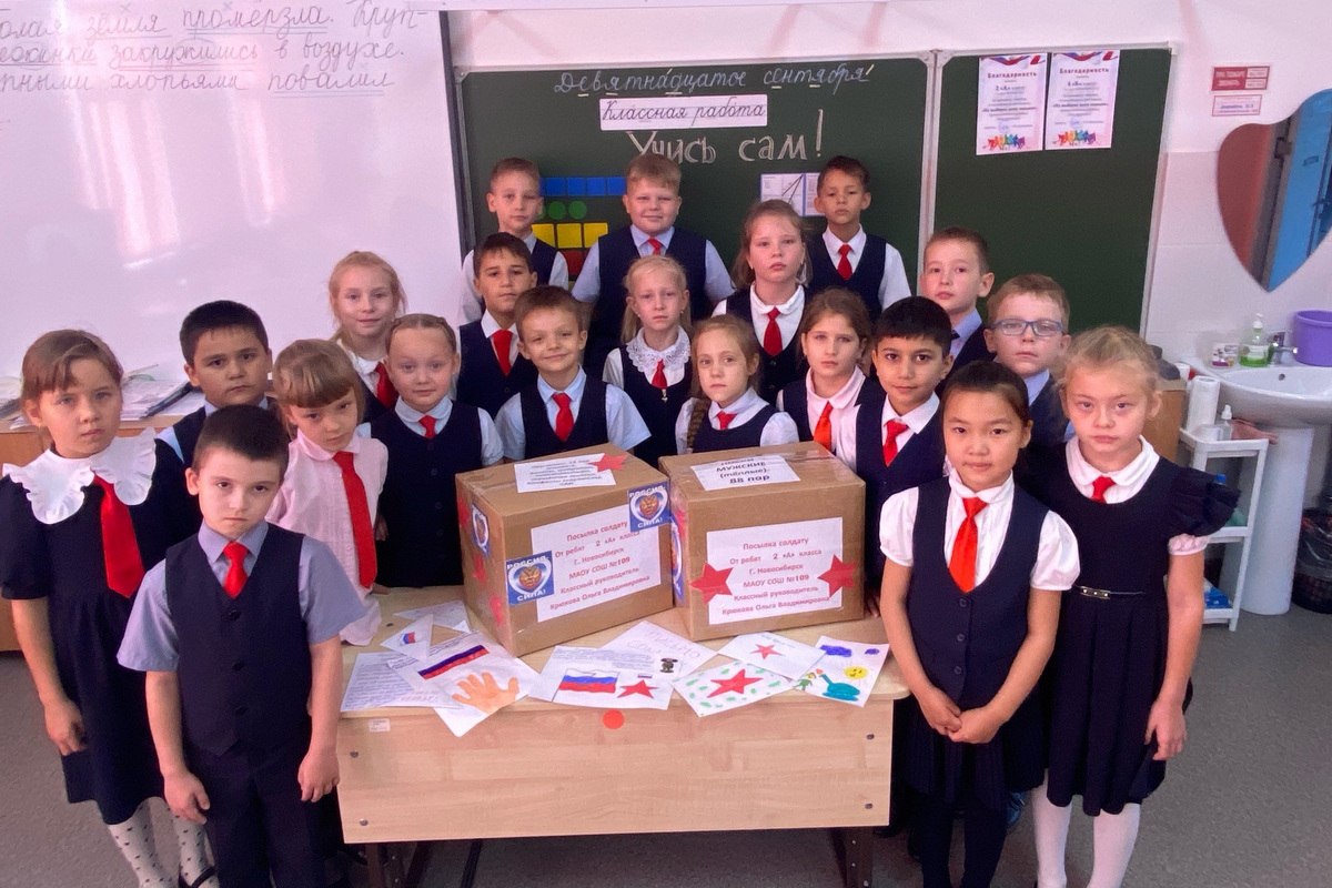 Ученики школы №109 города Новосибирска собрали и отправили посылки для военнослужащих с тёплой одеждой, предметами первой необходимости, медикаментами и продуктами длительного хранения.