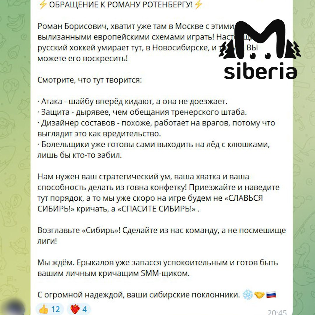 Комментариев под его последним постом уже больше 15к. Кто-то засыпает Ротенберга хэштегами, кто-то объясняет, почему ему нужно в Новосибирск. Самые изобретательные присылают фото, на которых он якобы уже в команде.