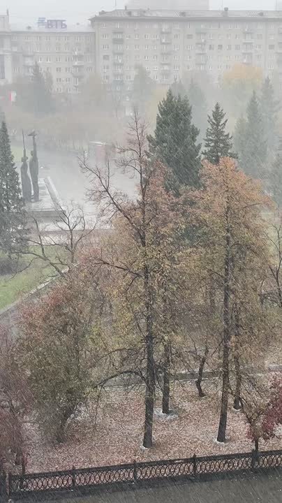 В центре Новосибирска случился первый снегопад. Жители левобережья сообщают, что снег пролетает над площадью Маркса.
