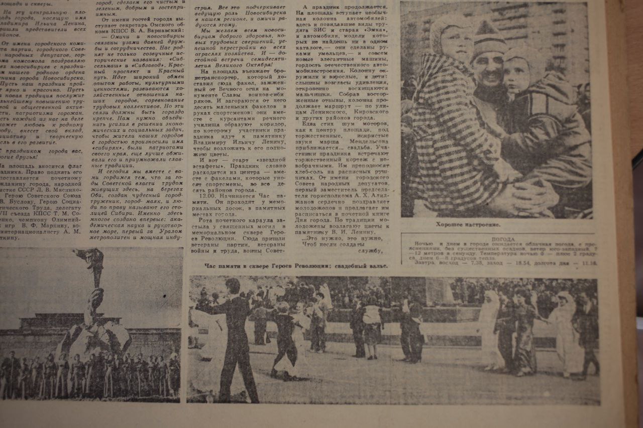 Такую непривычную нам дату назначили, чтобы приурочить событие к 70-летию Великой Октябрьской революции. Осень не помешала горожанам отлично провести время. В Ленинском районе прошло театрализованное шествие в форме солдат, матросов и комиссаров гражданской войны. В Заельцовском районе на улице Кропоткина состоялся парад сказочных героев. Дзержинский район отличился молодёжным карнавалом с праздничным костром у дома культуры «Строитель», а в Первомайском – на площади перед Первомайским райисполкомом – устроили карнавал «Овощной хоровод». В Советском районе на площадке у кинотеатра «Маяк» выступила группа политической песни «Амиго». На набережной (которую мы теперь знаем как Михайловскую) горожан развлекали журналисты, актёры и писатели-юмористы.