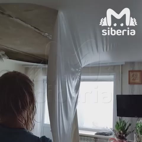 На чердаке лопнула труба и вода пошла вниз по фасаду. Сильнее всего досталось квартире на 5 этаже, где порвало натяжной потолок. Потоки дошли даже до первого этажа.