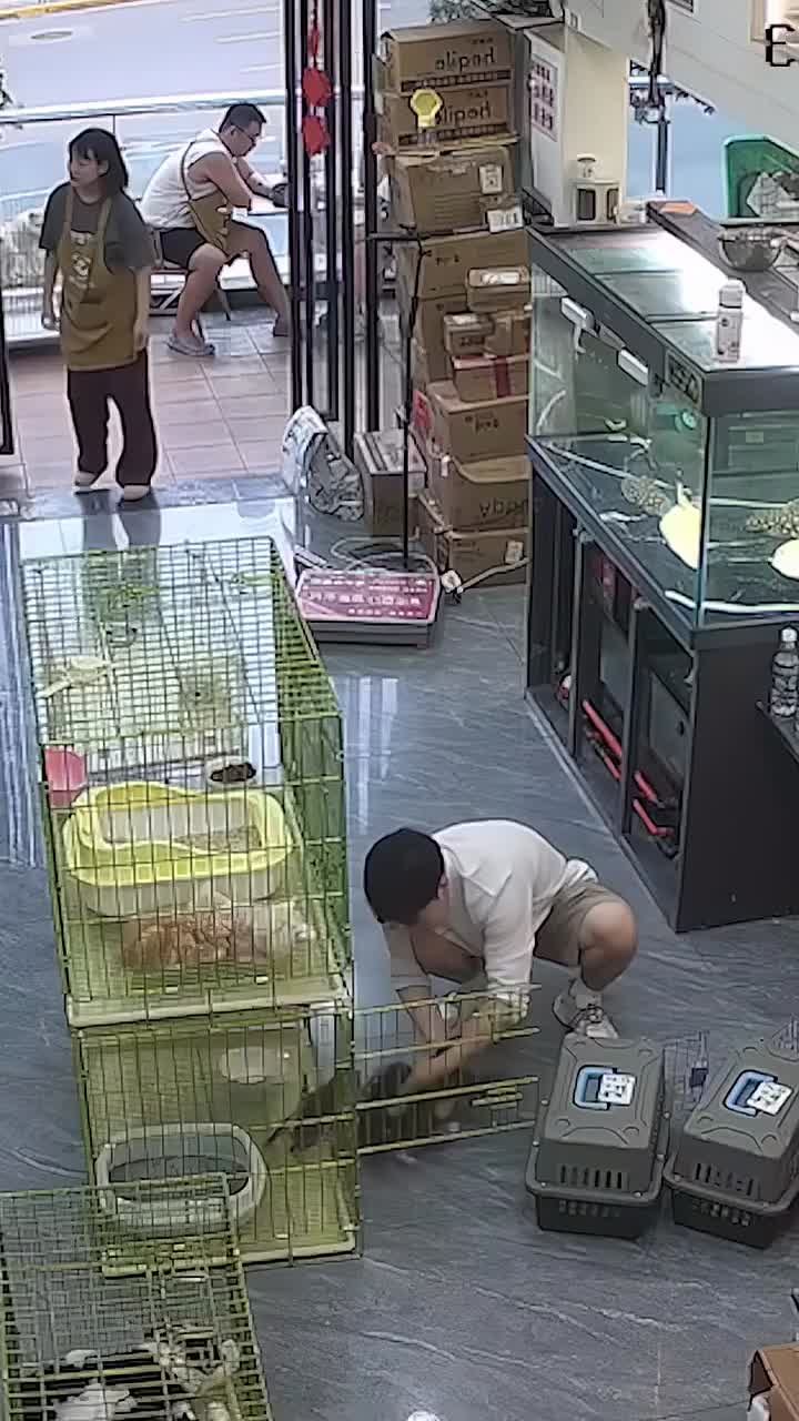 Нелегкая работа у этого китайского парня. Бедолага работает в зоомагазине, и каждый день ловит разбегающихся котят, которые не хотят сидеть в клетке