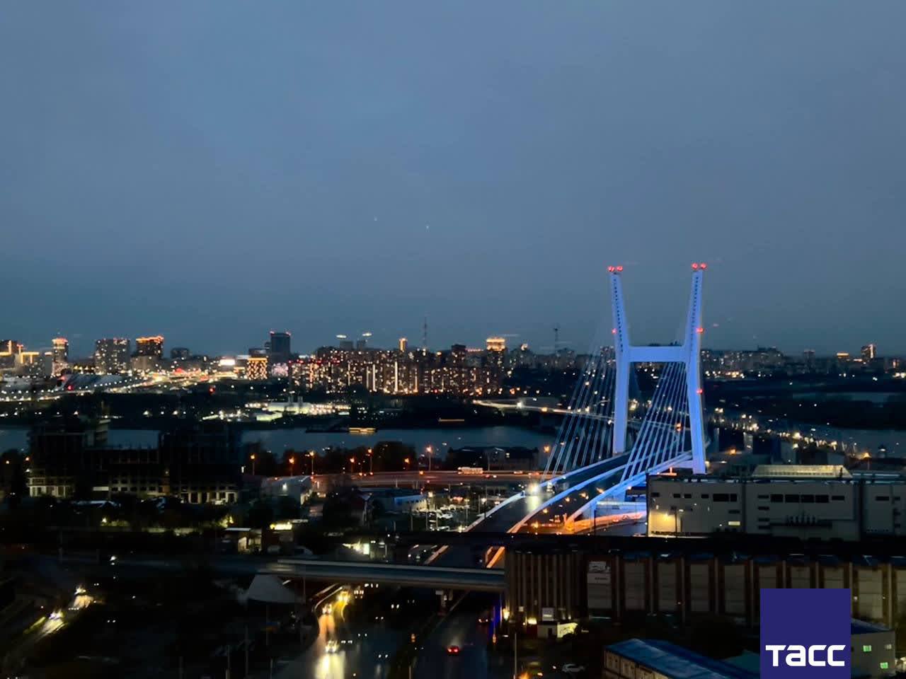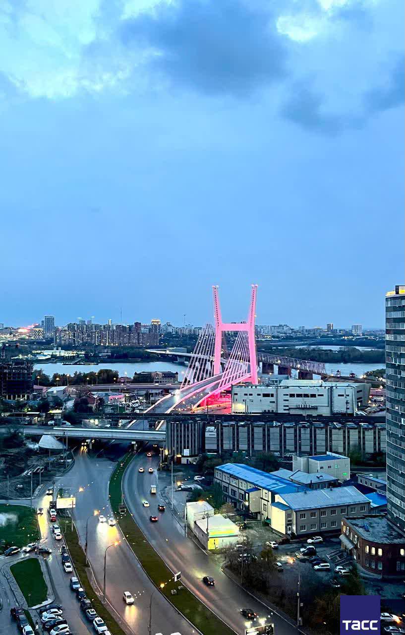Подсветку строящегося Центрального моста через Обь стали включать в Новосибирске.
