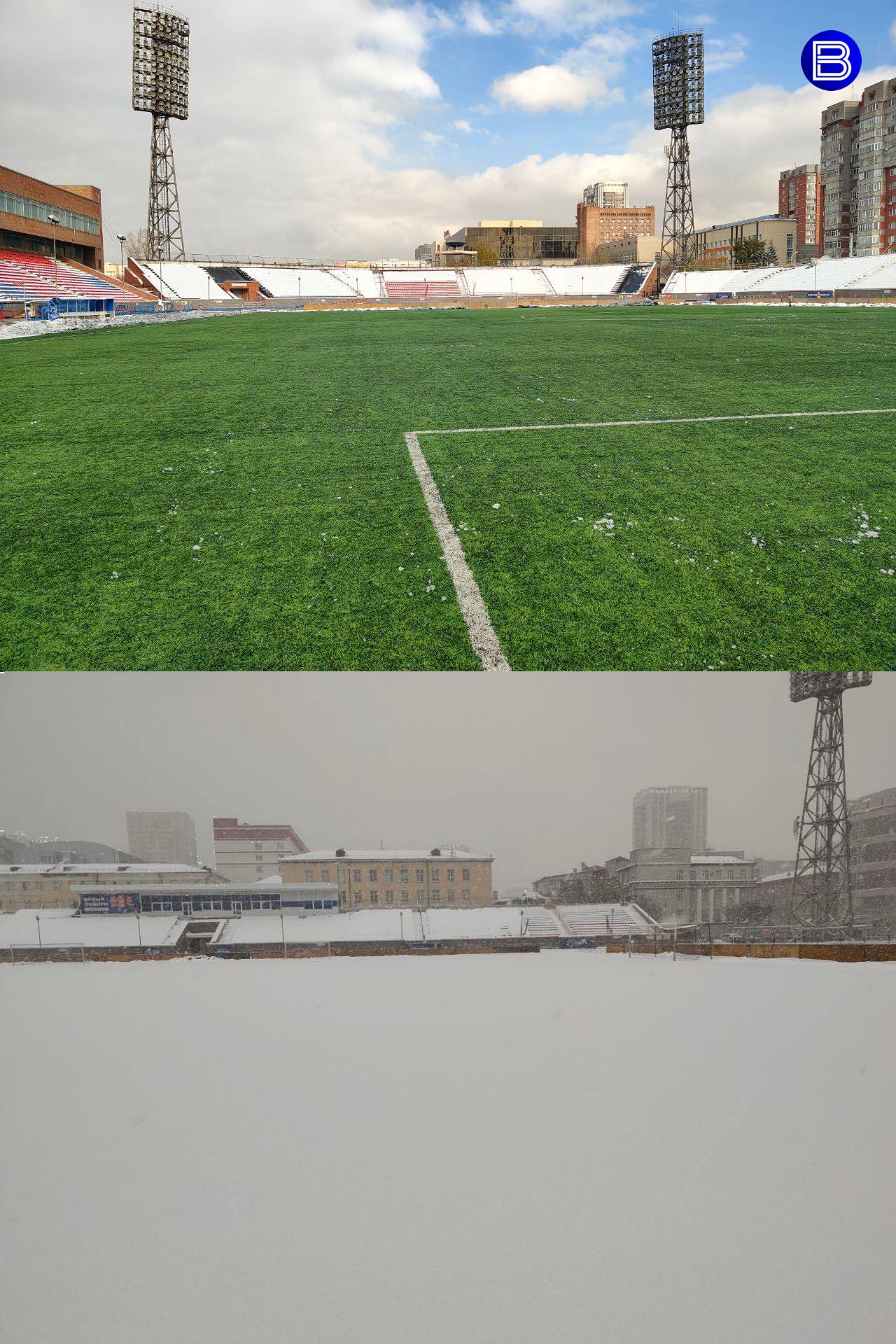 Виной всему — обильный снегопад, который полностью покрыл поле стадиона «Спартак». Игру теперь проводят в крытом манеже «Заря» 9 октября в 16:00.