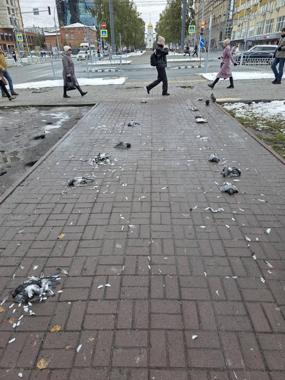 Горожане столкнулись с такой картиной. Прямо на тротуаре сибиряки нашли больше 10 раздавленных голубей. Несколько птиц были живы, но ранены. Кто учинил жестокую и хладнокровную расправу над пернатыми, пока неясно.