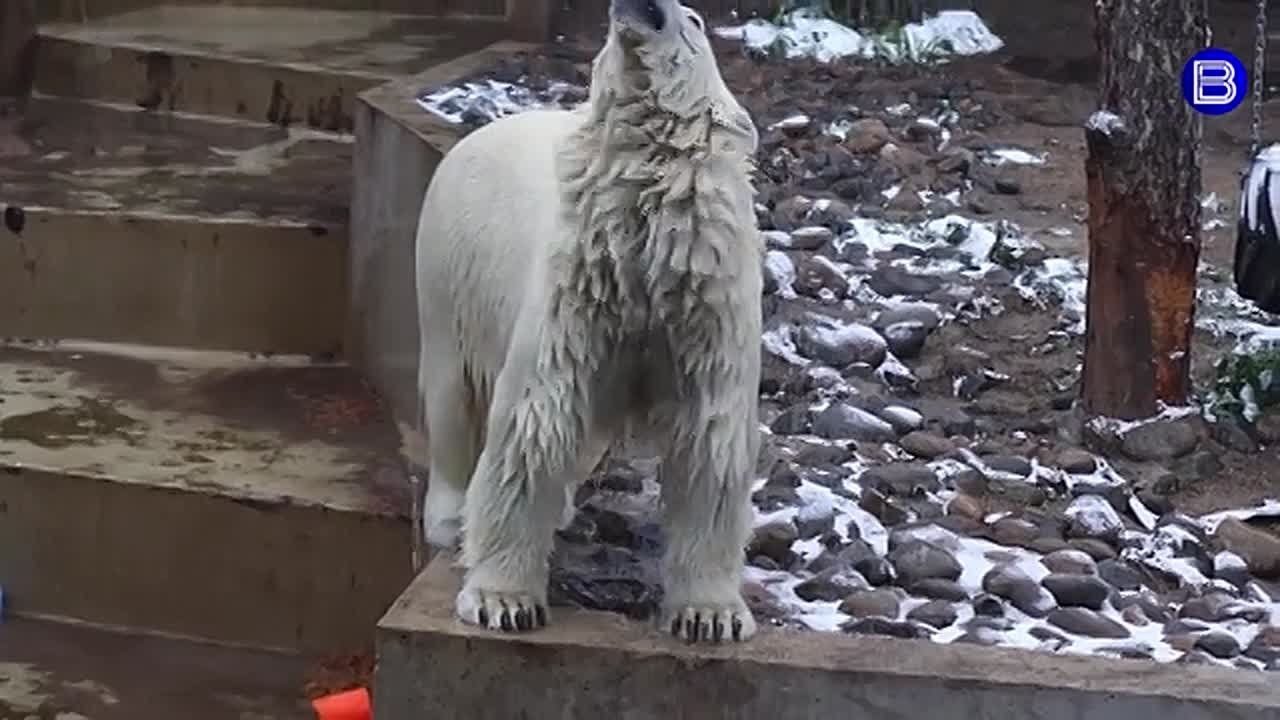 Белые медведи из новосибирского зоопарка устроили эпичные прыжки в воду.