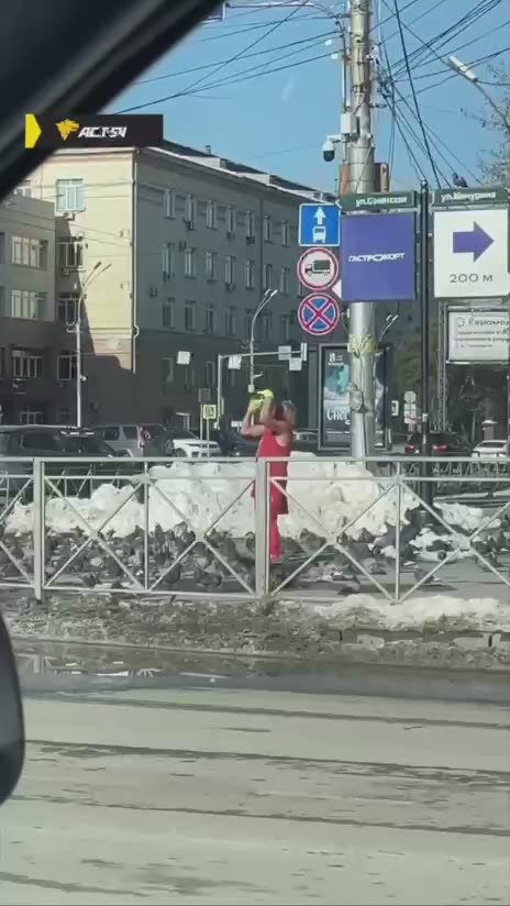 На пересечении улицы Гоголя и Красного проспекта в Новосибирске заметили любителя танцевать в окружении голубей. А этот аккомпанемент в исполнении женщины за кадром - отдельный шедевр.
