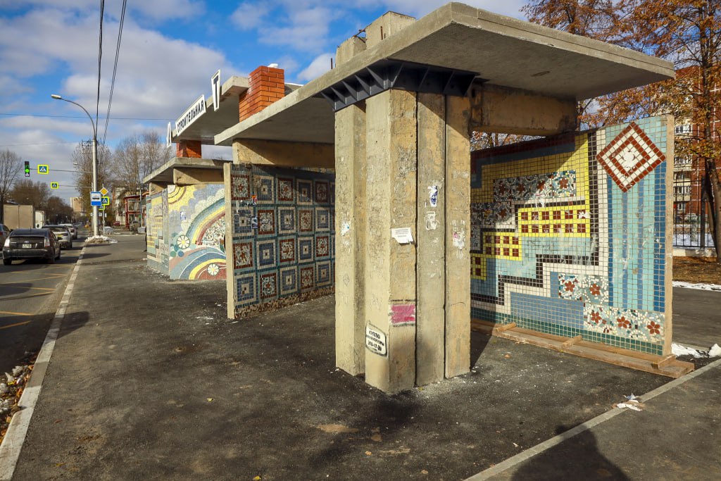 Кроме того, заново изготавливают надпись «Остановка „Строительная“», а также исторические буквы «А» и «Т» — так раньше обозначали виды проходящего здесь транспорта: «А» — автобус, «Т» — троллейбус или трамвай.