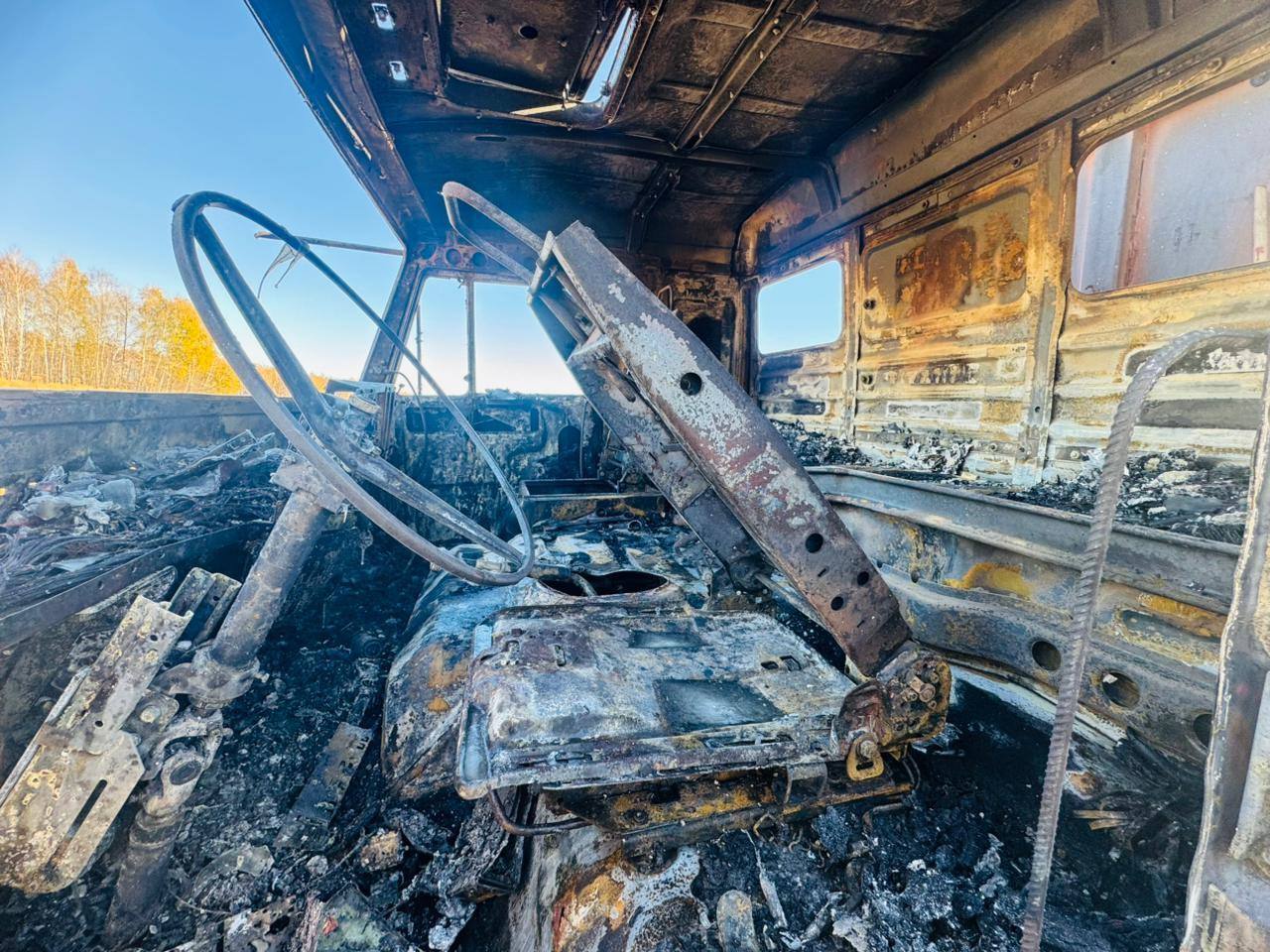 КамАЗ сгорел до тла на трассе в Новосибирской области