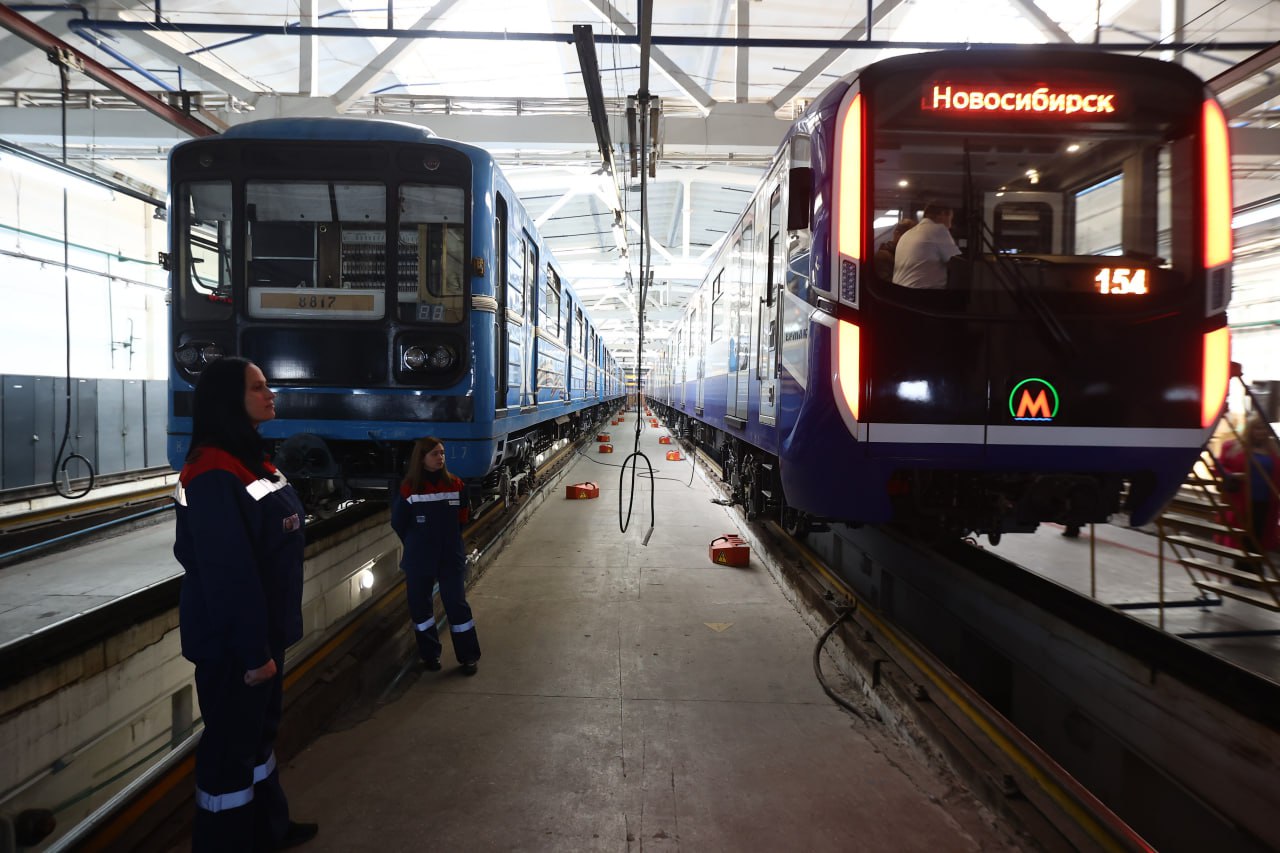 Первый пятивагонный метропоезд модели «Ермак» приступил к перевозке пассажиров Новосибирского метрополитена.