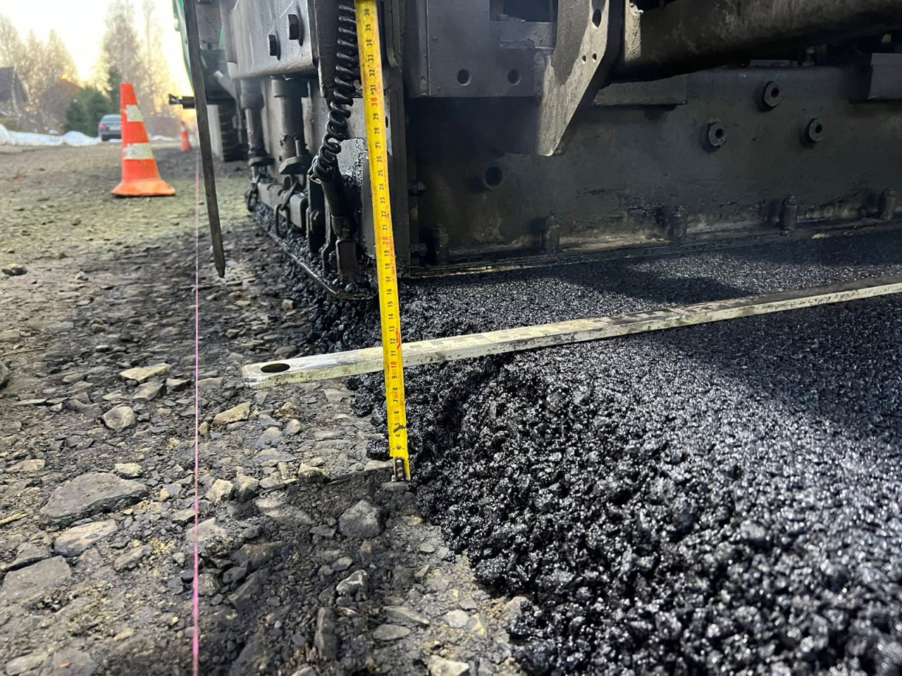 Участок от дома № 1 до дома № 36 площадью около 2500 кв. метров сегодня заасфальтировали, предварительно сформировав полотно. Сделали водоотведение.
