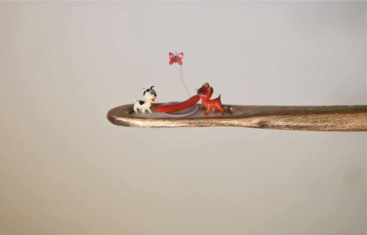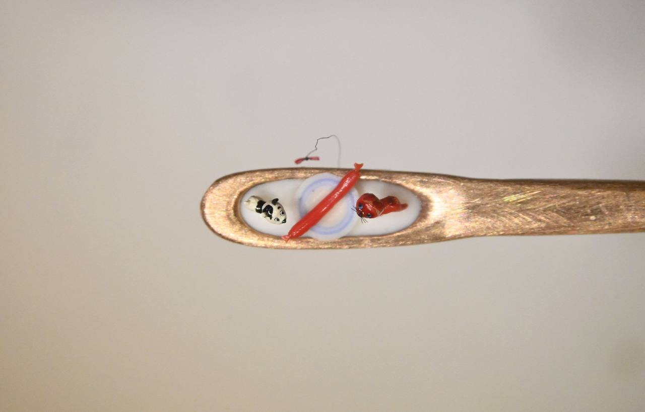Мастер микроминиатюры из Новосибирска Владимир Анискин поместил героев мультфильма «Котенок по имени Гав» в игольное ушко. Об этом сообщил он в своем Telegram-канале.