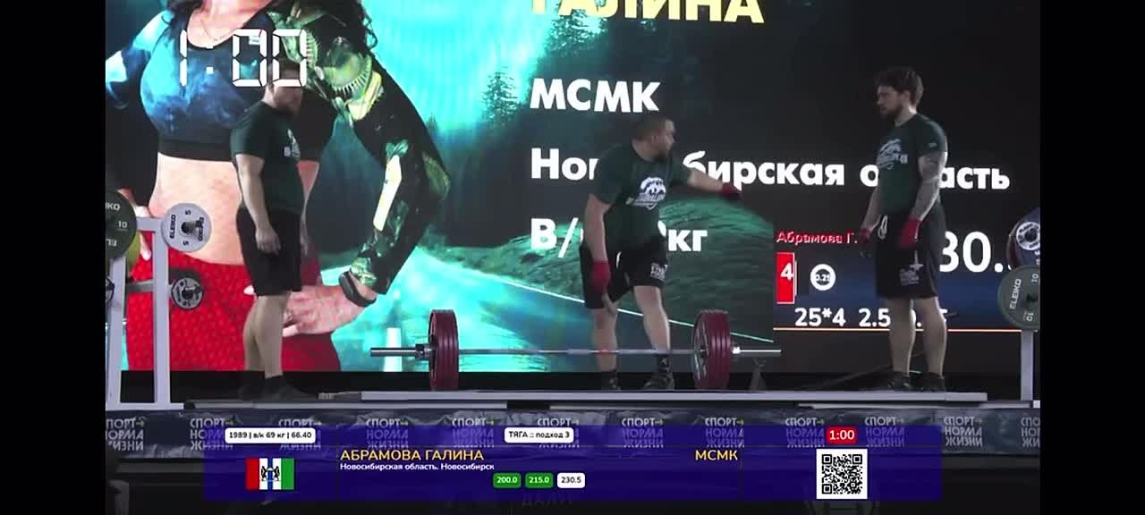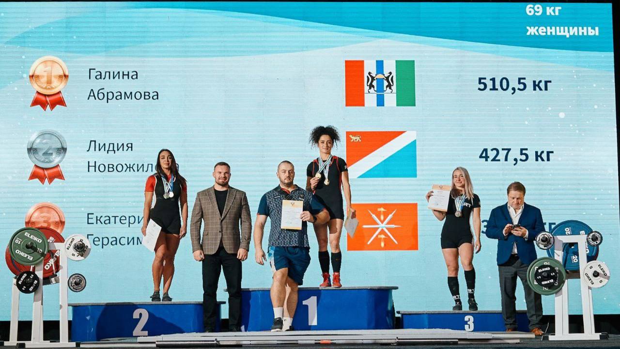Воспитанница Новосибирского центра высшего спортивного мастерства Галина Абрамова на Кубке России по пауэрлифтингу (троеборье классическое) в весовой категории до 69 кг выполнила 9 из 9 успешных попыток и установила: