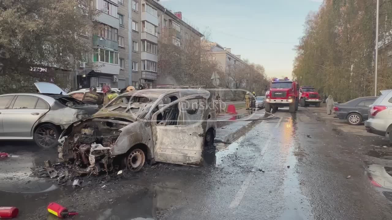 Пожар уже потушили. Одна машина сгорела полностью, три получили повреждения. Владельцы на месте, сильно переживают… К счастью, из людей никто не пострадал.