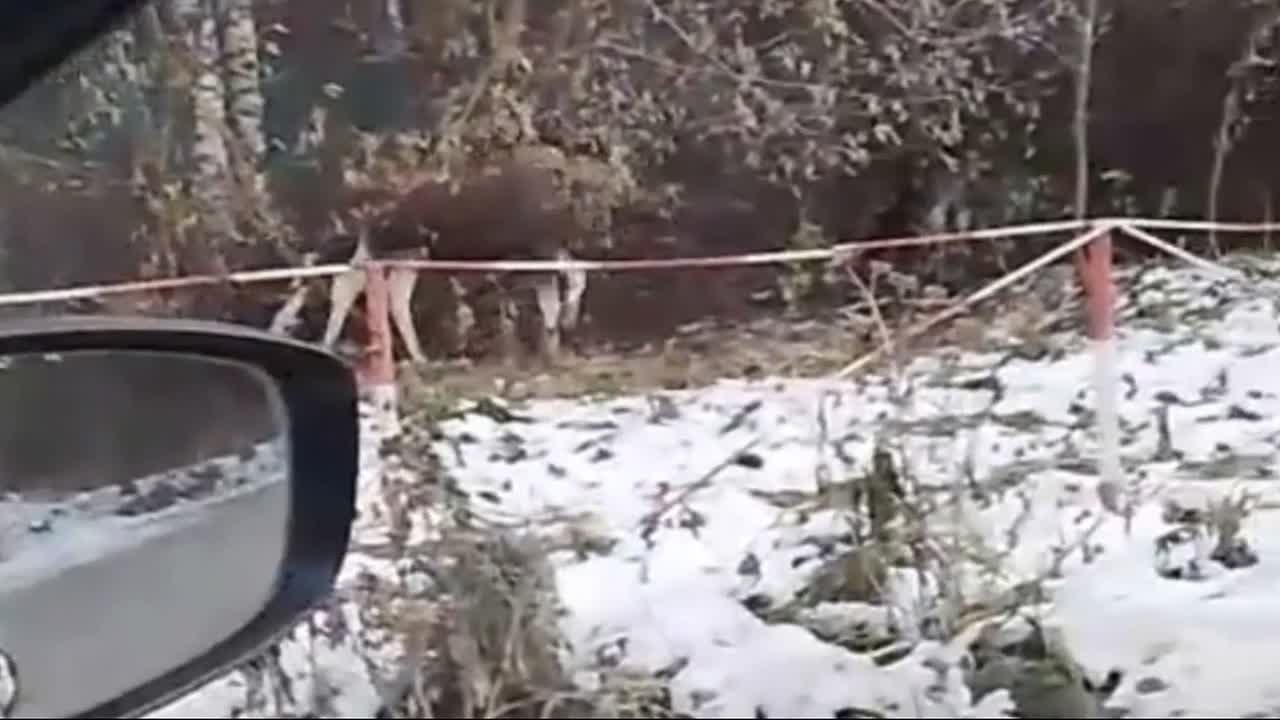 Лось вышел к людям у парка "на Камнях" в Бердске