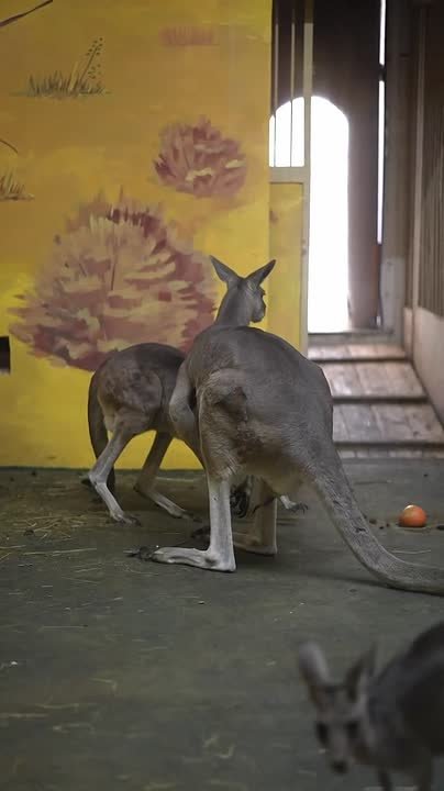 «В Новосибирском зоопарке большие серые кенгуру появились в 2008 году. Их вольер состоит из двух частей: теплый павильон с выходом на улицу»,