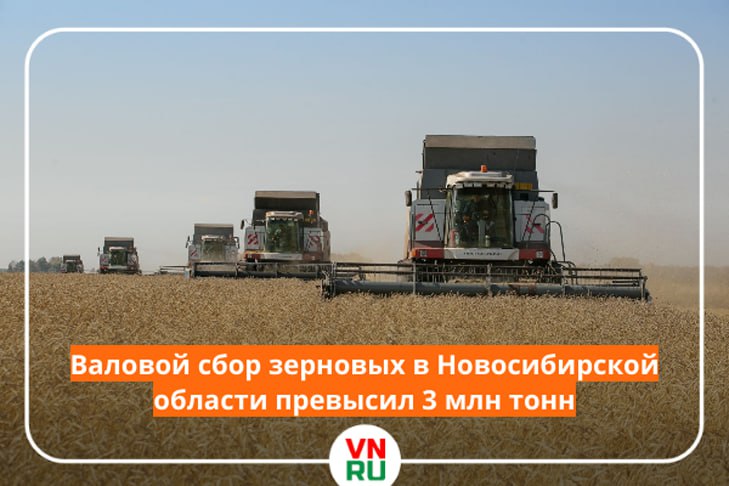 Валовой сбор зерновых и зернобобовых культур в Новосибирской области превысил 3 млн тонн, что превышает значение прошлого года на 467 тыс. тонн при обмолоте 90 процентов уборочной площади.