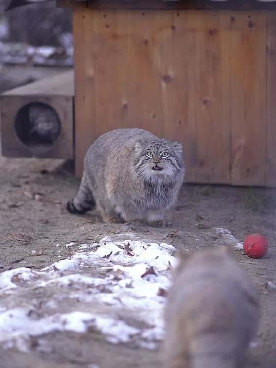 Манулы в Новосибирском зоопарке им. Шило активно готовятся к зиме. Они стали менее подвижными и едят больше обычного.