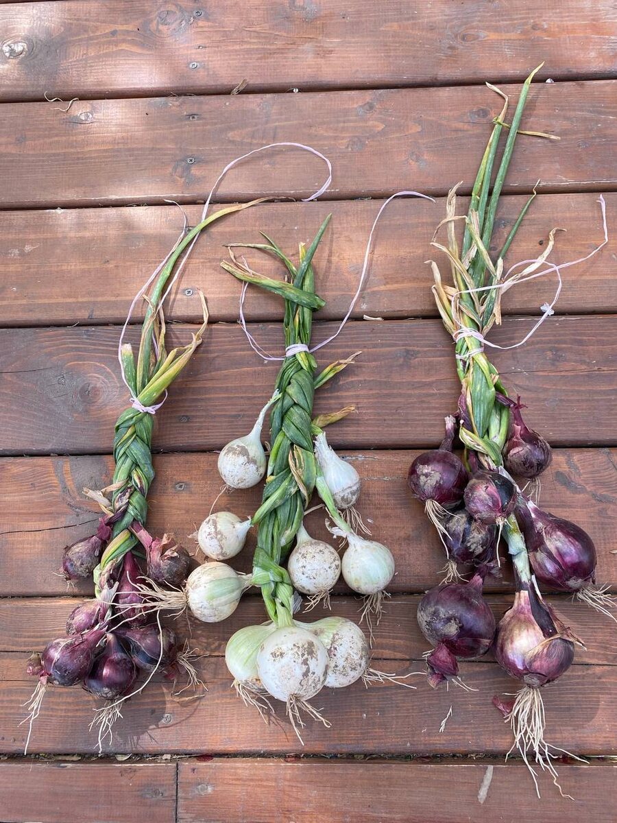 Не рекомендуется спешить с обрезкой ботвы и корней; лучше дать овощам полностью дозреть и только затем аккуратно подготовить к хранению. У чеснока оставляют 5-10 см стебля, а у лука – 3-5 см. Корни следует укоротить до нескольких миллиметров.