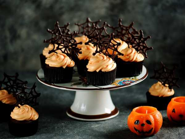 Когда капкейки остынут, можно приготовить крем. Взбить сливочное масло с сахарной пудрой, добавив какао и сливки. Взбивать до достижения легкой и пушистой консистенции. Нанести полученный крем на остывшие капкейки. Растопленный белый шоколад использовать для создания «паутинки» на поверхности крема. Провести тонкой зубочисткой для создания паутинообразного узора, добавив темный шоколад для создания эффекта паучков. Идеальный десерт для создания атмосферы Хэллоуина готов!