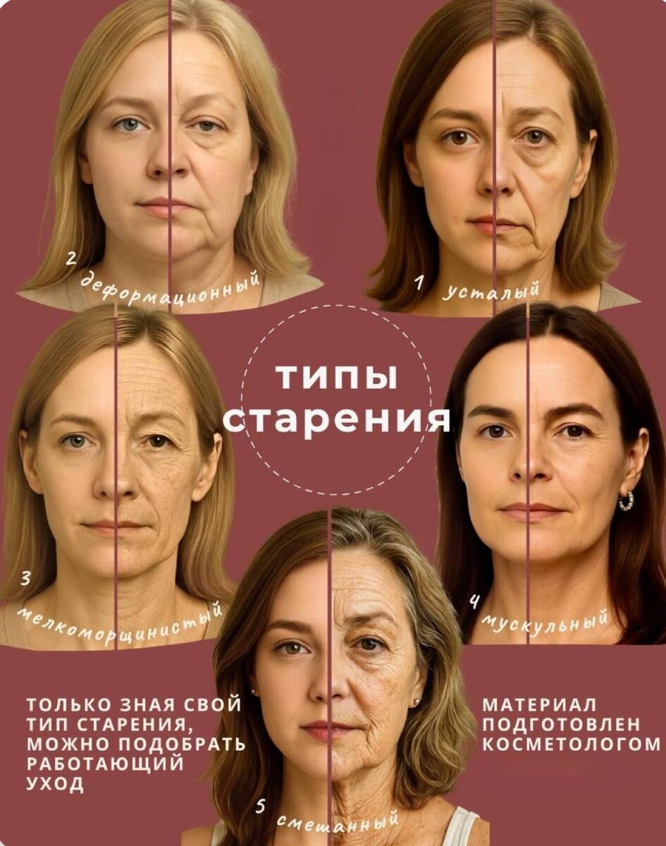 Каждый тип старения лица требует индивидуального подхода, так как причины и проявления процессов различаются. Выделяют несколько основных типов старения: