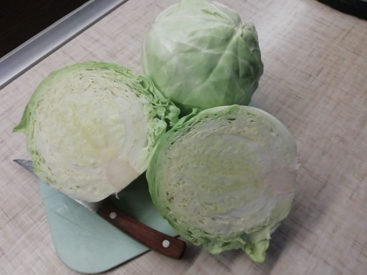 2. Половину кочана капусты нарежьте, а помидоры разделите на две части.
