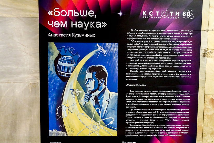 Каждое полотно сфотографировали и сопроводили небольшим авторским комментарием и информацией по теме произведения. Выставка в метрополитене продлится до конца года, чтобы как можно больше пассажиров смогли с ней ознакомиться, погрузившись в синтез науки и искусства.
