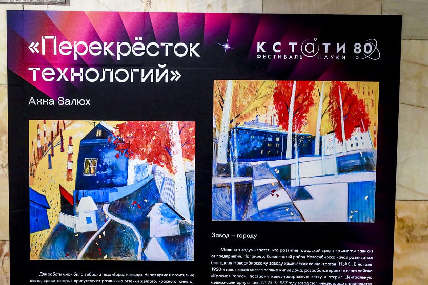 В пешеходном тоннеле между станциями «Красный проспект» и «Сибирской» Новосибирского метрополитена работает выставка живописи студентов кафедры искусств НГУАДИ. Рисунки посвящены фестивалю науки «Кстати-80» и объединены общей темой — атомная энергетика.