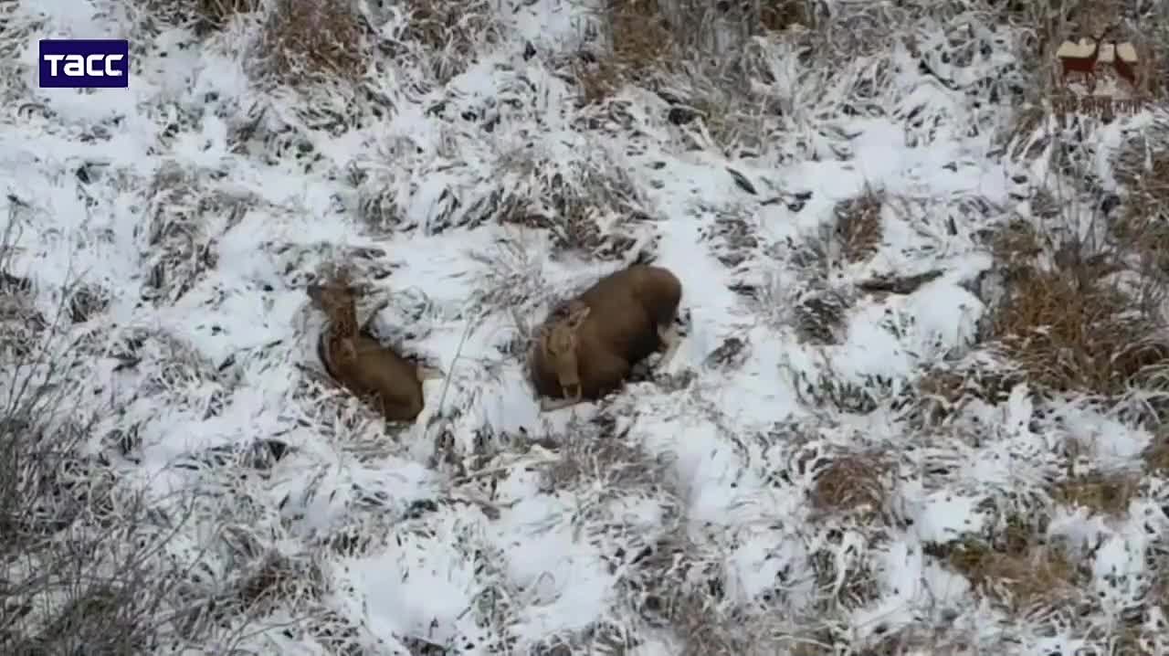 Отдыхающие лоси и косули, а также суетливый кабанчик попали в объектив инспекторов заказника «Кирзинский» в Новосибирской области.