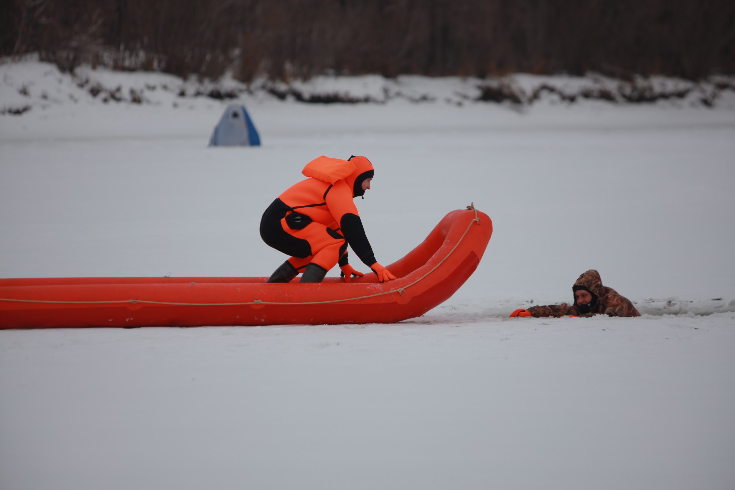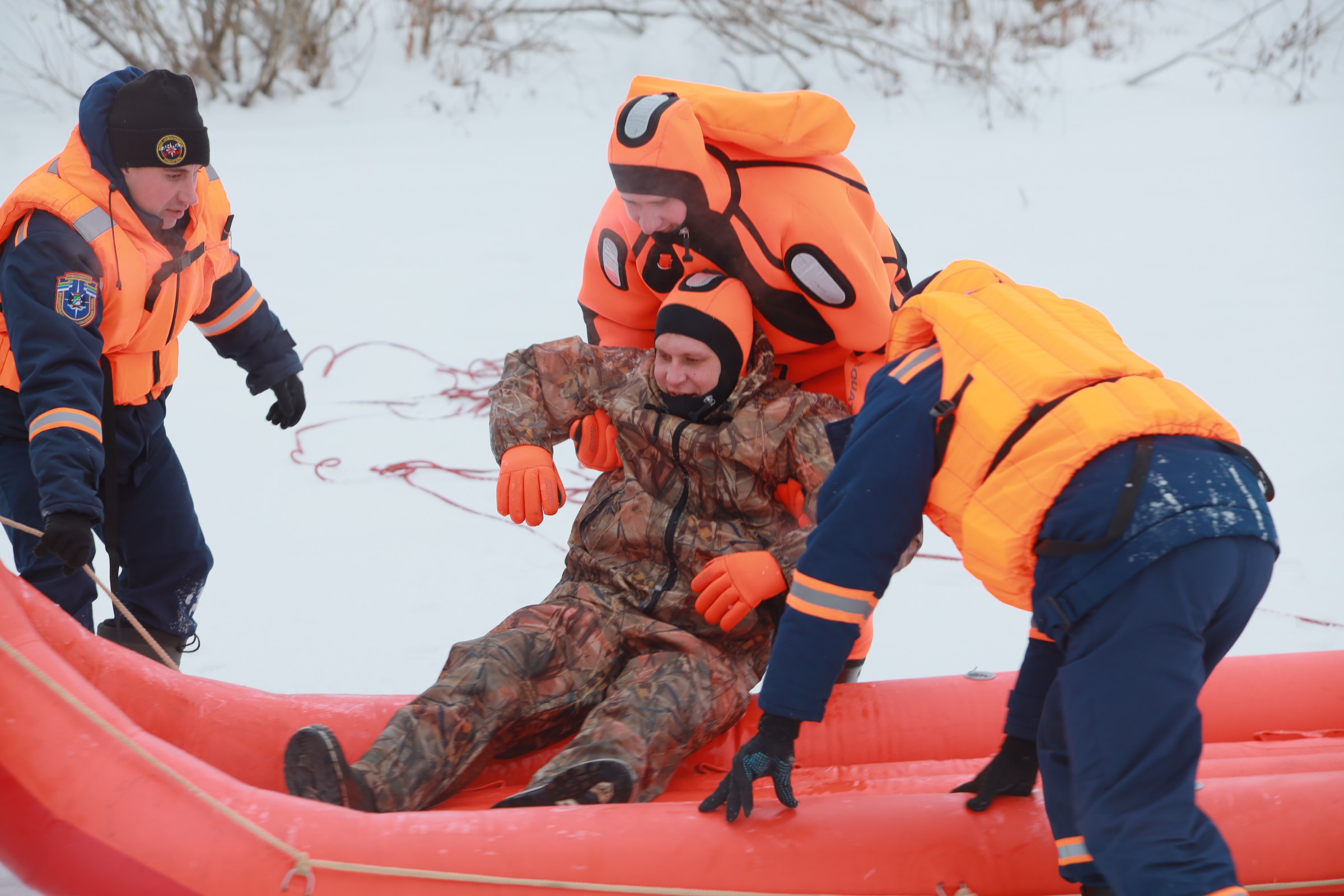 Во время рейдов спасатели разъясняют рыбакам правила безопасности и проводят тренировки по спасению провалившихся под лёд.
