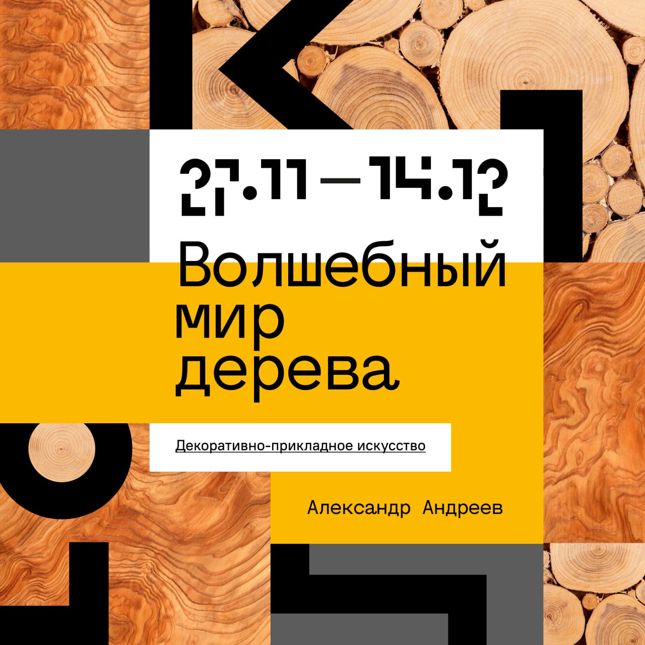 Экспозиция «Волшебный мир дерева» состоит из 100 работ. Александр Андреев использует природные свойства разных пород древесины, раскрывая их уникальный характер, цвет и текстуру. В руках мастера дерево превращается в уникальные изделия эко-арта. На выставке представлены панно, вазы, скульптуры, мебель и посуда.