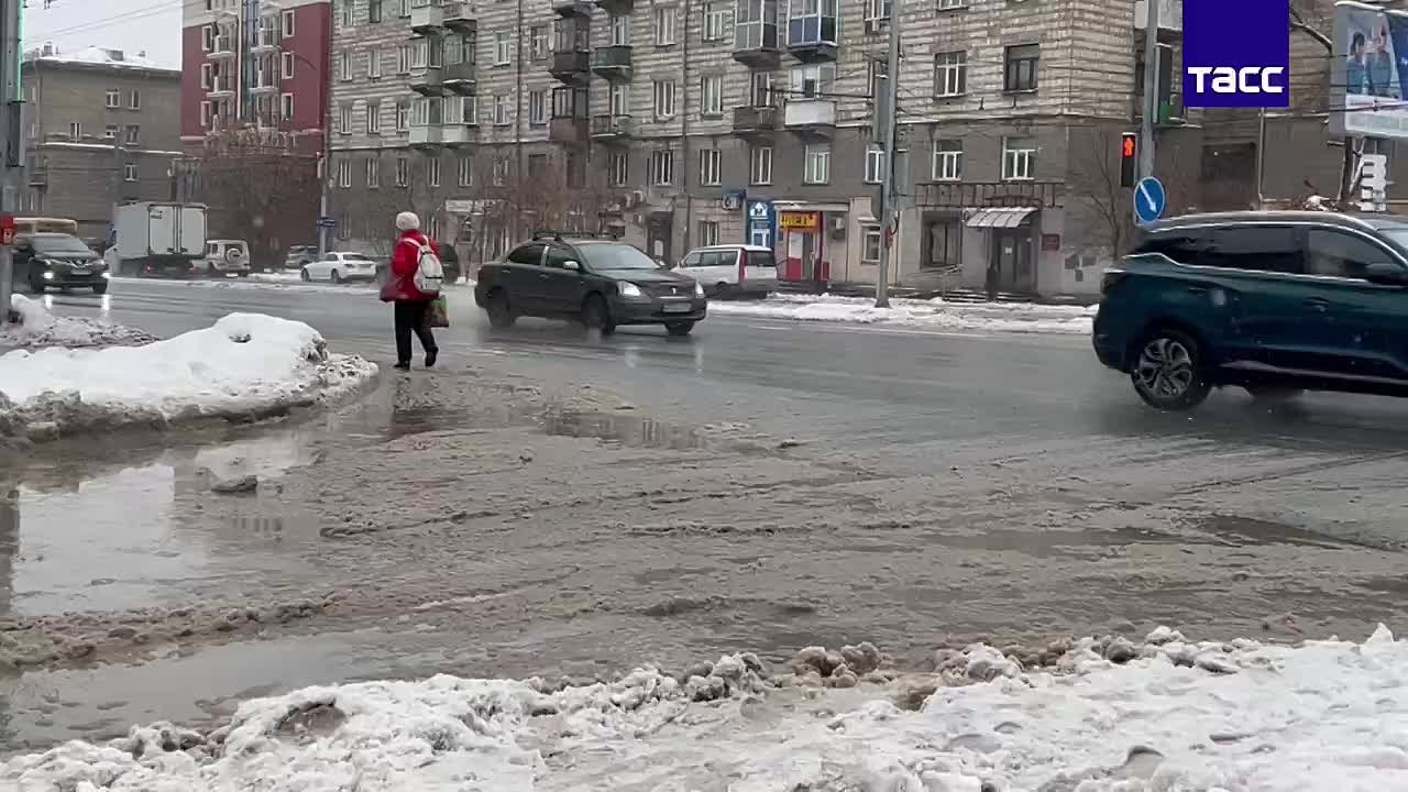 Плюсовая температура воздуха в конце ноября в Новосибирске привела к таянию льда и снега, в городе образовались огромные лужи.