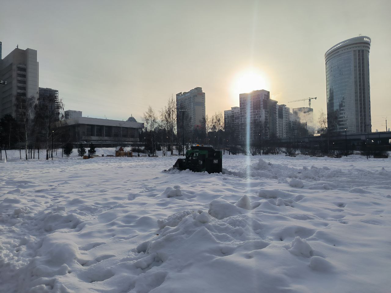 Уже начали расчищать территорию под будущий каток. Тут же, неподалёку, планируют установить новогоднюю ель.