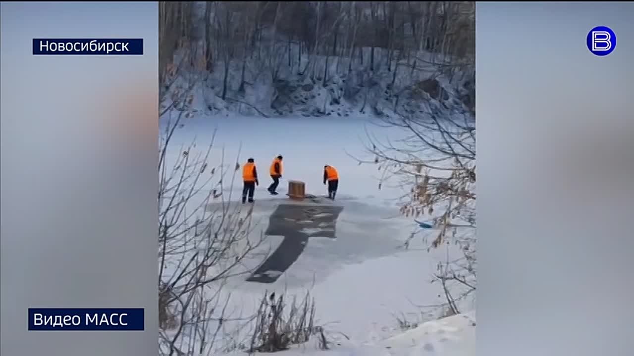 Опасную прорубь обнаружили сотрудники МАСС на карьере Горский в Новосибирске.