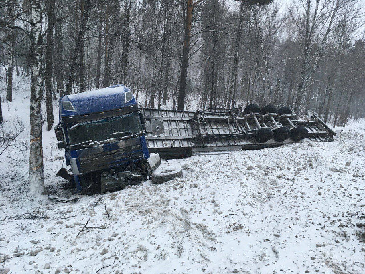 По данным ведомства, на 91 км трассы Р-255 «Сибирь» водитель Toyota Avensis выехал на полосу встречного движения, где врезался в грузовой DAF .