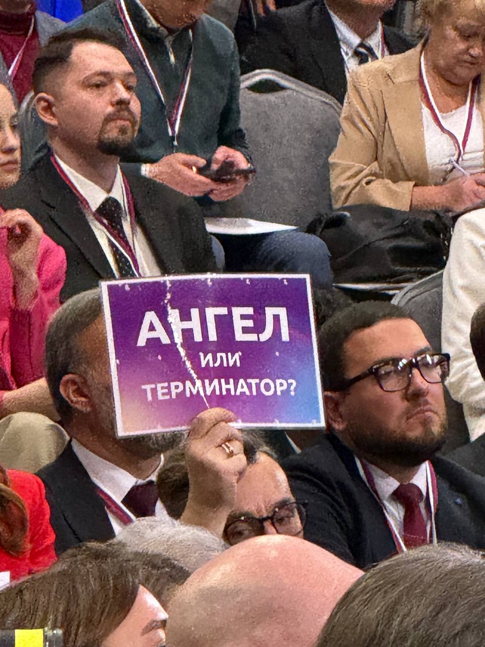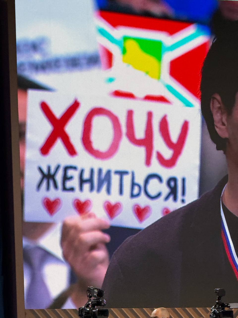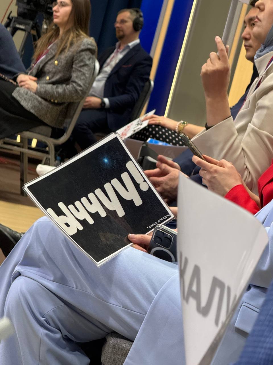 «Ыччуу» и «код зла» — журналисты на прямой линии с президентом соревнуются в оригинальности табличек.
