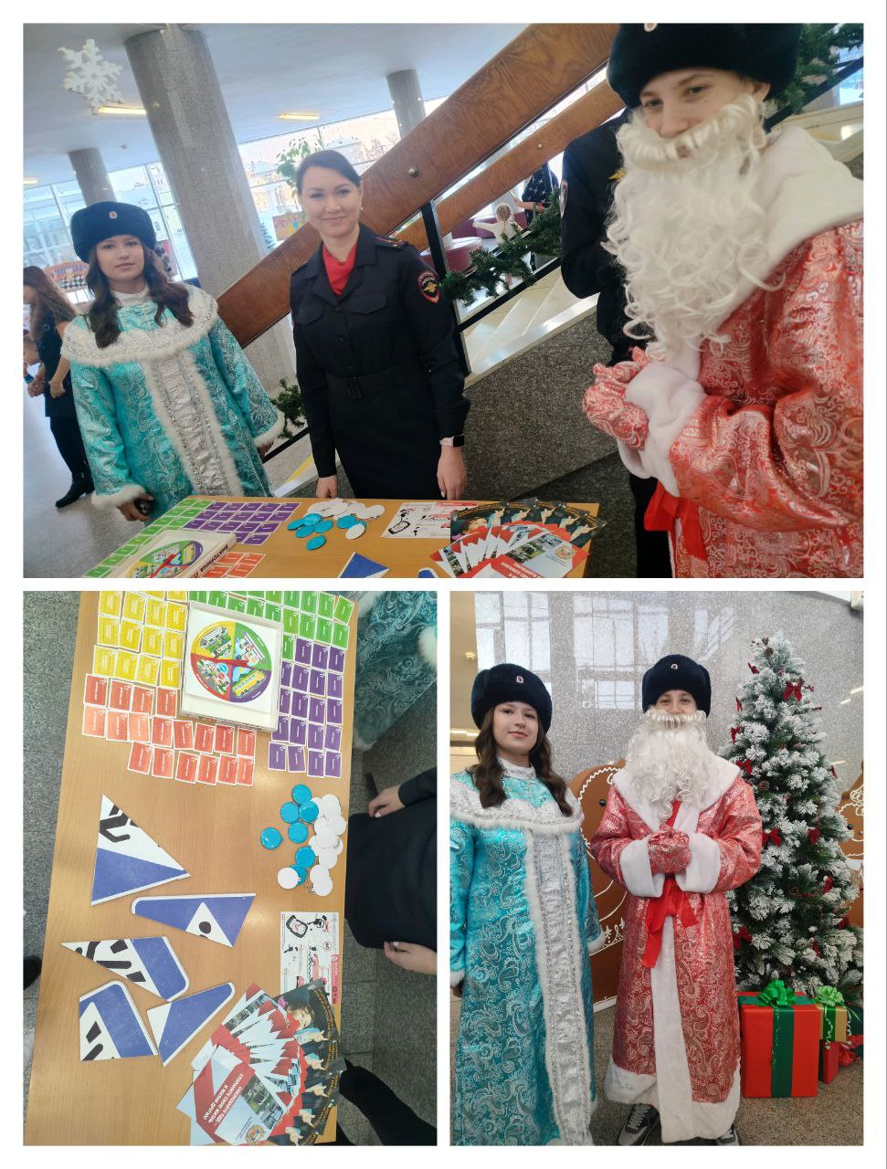 Полицейский Дед Мороз и инспекторы ГИБДД встречали зрителей, напоминая о дорожной безопасности через игры и викторины.