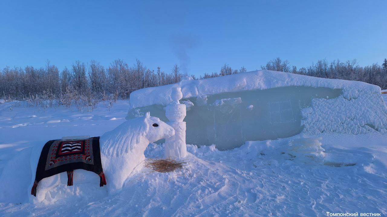 Снежные лошадки появились в Хандыге в Якутии. Любительницы скандинавской ходьбы сделали лошадку Кыыдаана и шахматного коня у елки с экологичными игрушками. А льдину в виде якутского балагана нанесло рекой.
