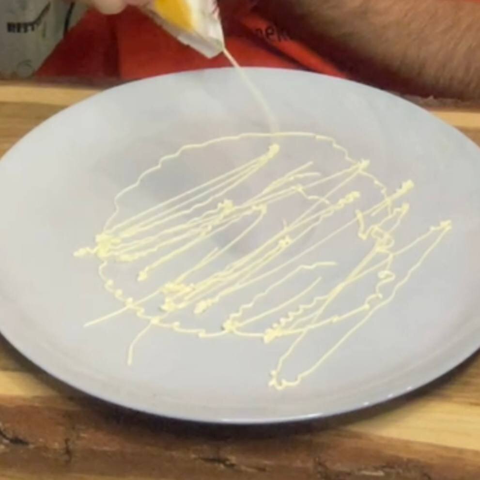 Создание этого изысканного салата начнется с создания основы. На дно выбранного блюда выдавливают майонез, придавая ему красивую форму с помощью отрезанного уголка упаковки. Далее выкладывается первый слой — морковка по-корейски, после чего добавляется консервированная фасоль и снова намазывается майонез.