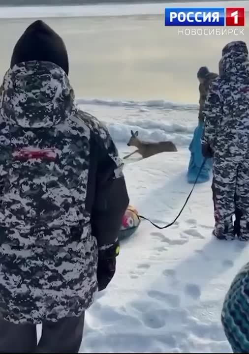 Под Новосибирском семья Новосельцевых спасли молодую косулю. Она вышла к реке, чтобы предположительно, попить, и угодила в ловушку: вмёрзла в лёд.