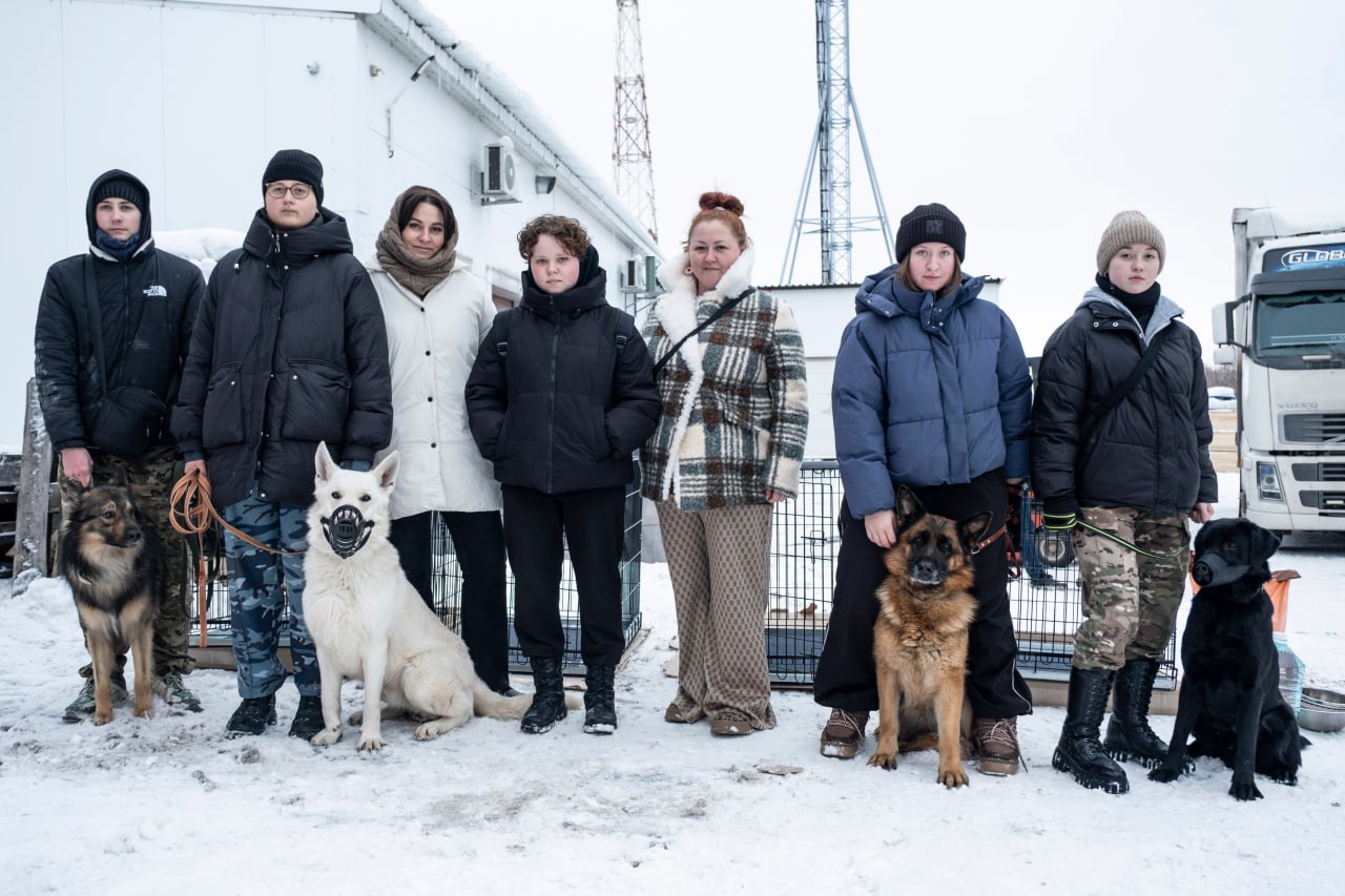 В этот раз в группу отправки вошли четыре собаки: немецкая овчарка Крафта, отслужившая 4,5 года в розыске; белая швейцарская овчарка Раф, который три года занимался спортом по послушанию и работе носом; лабрадор-ретривер Зевс с двухлетним стажем поиска наркотиков; метис немецкой овчарки и хаски Барон.