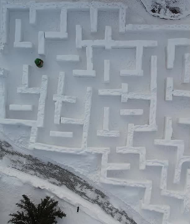 Попробуй выбраться: снежный лабиринт соорудили в Новосибирском зоопарке