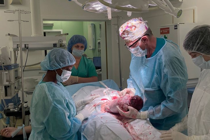Свою первую операцию кесарева сечения выполнила ординатор первого года обучения Абимбола Олаогун. Девушка приехала в столицу Сибири из Нигерии. Контролировал процесс в операционной профессор Игорь Маринкин.
