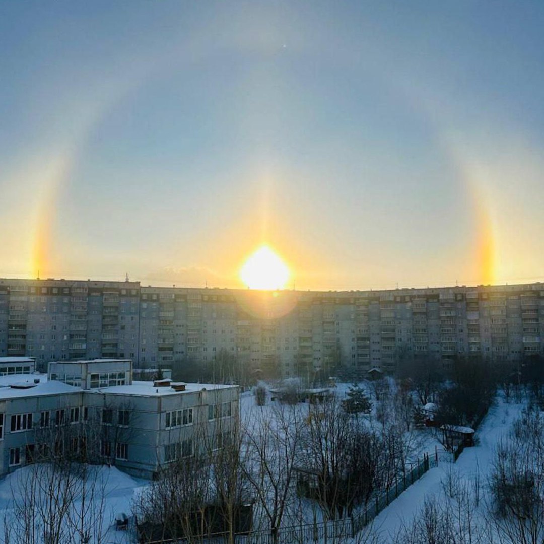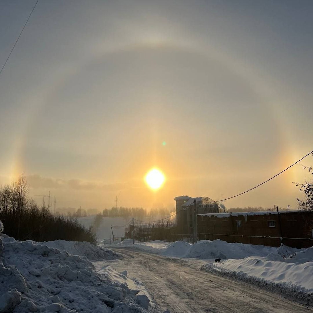 Солнечное гало поднялось над Новосибирском во время мороза.