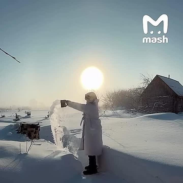 В Искитимском районе Новосибирской области жители устраивают морозные салюты из кружек на улице — вода замерзает на лету при -45. В Иркутской области температура упала до -50.