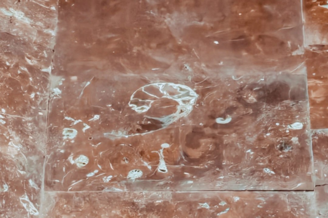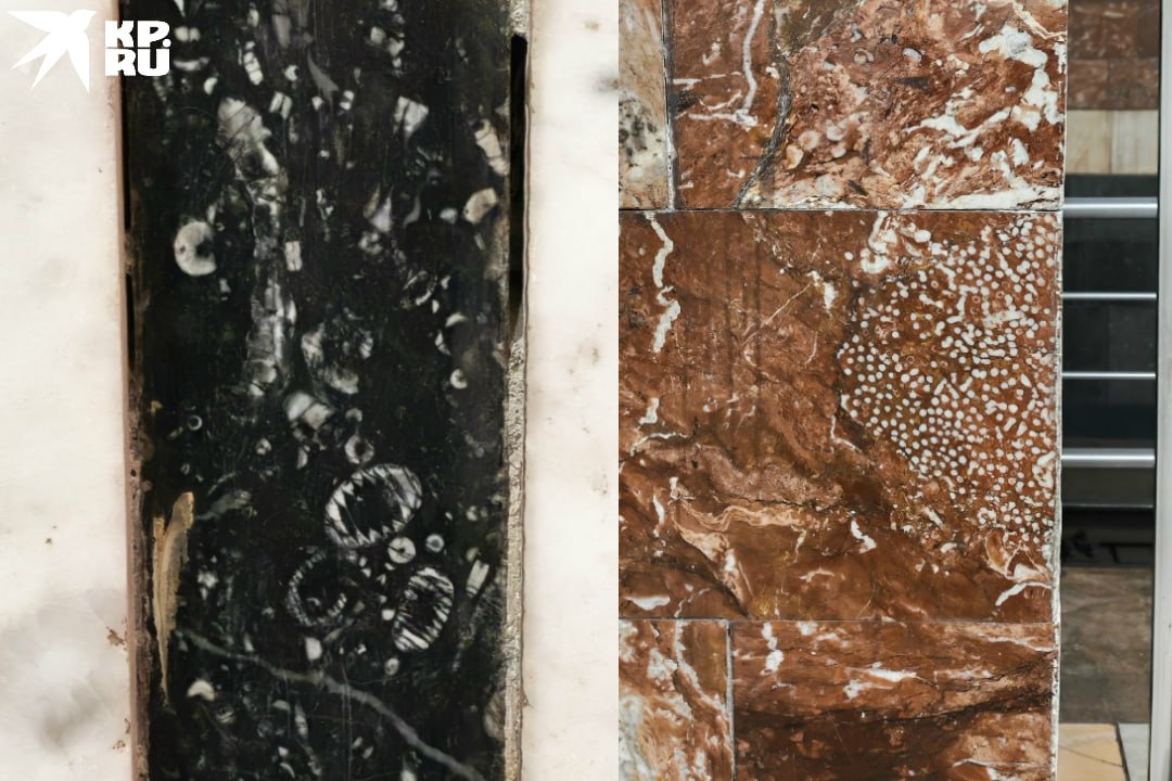 Сотрудница Музея природы - филиала Новосибирского государственного краеведческого музея Юлия Морозова обнаружила след древнего моллюска в плитках мраморизованного известняка, которым облицованы колонны метро.
