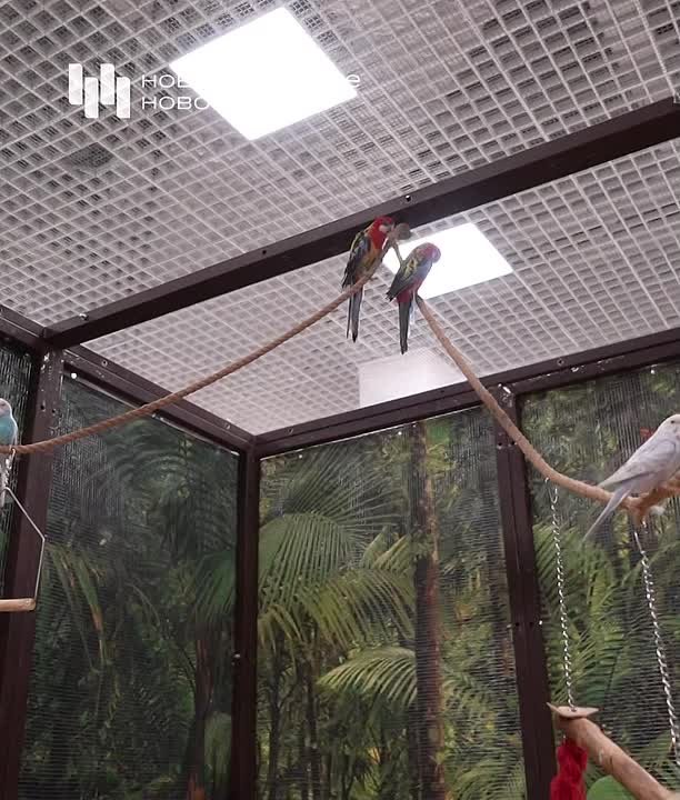 Необычную выставку попугаев открыли в торговом центре на площади Маркса. Здесь вместо клеток создали имитацию тропического леса. Попугаи свободно летают, садятся на плечи посетителям, раскачиваются на жёрдочках.