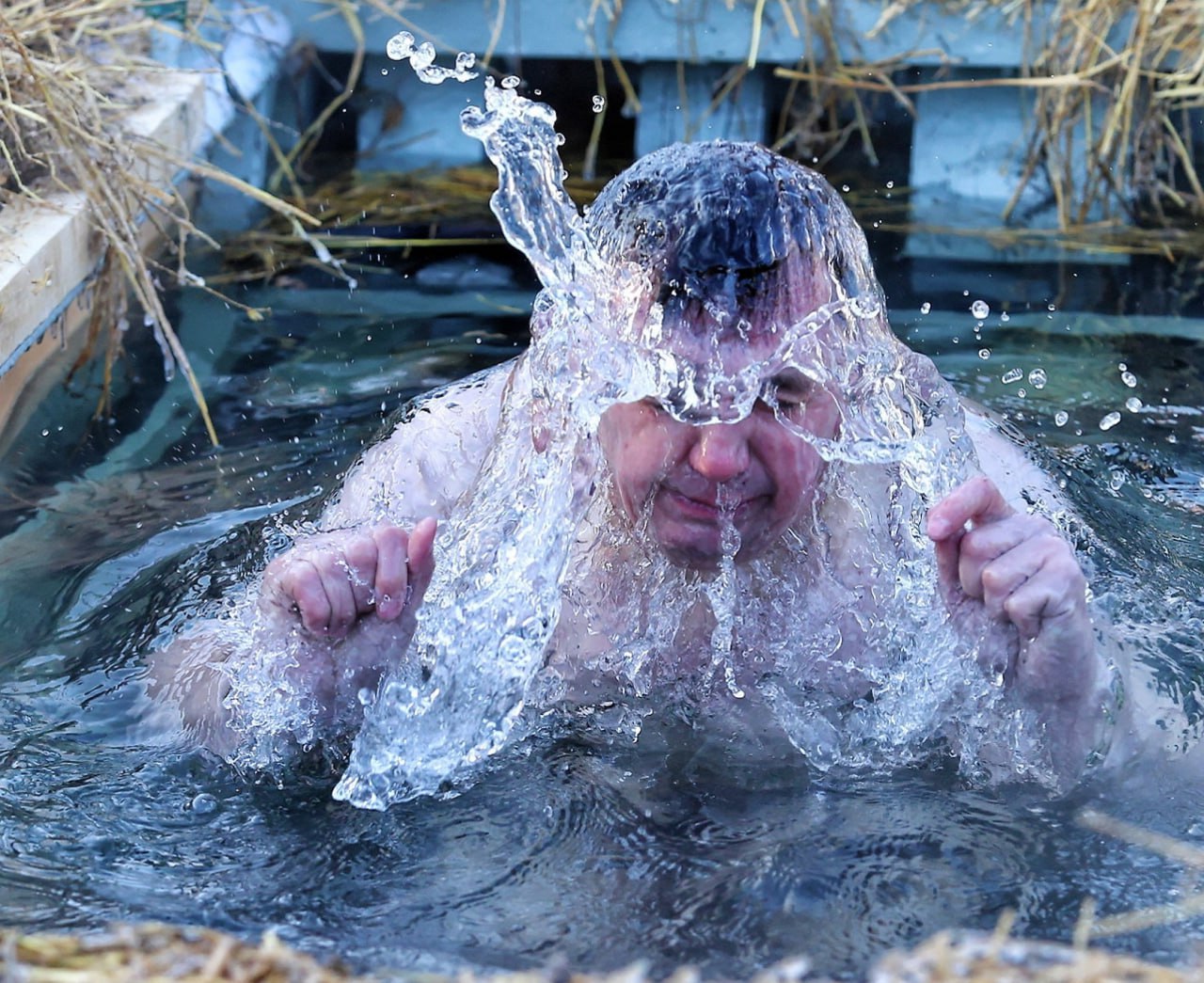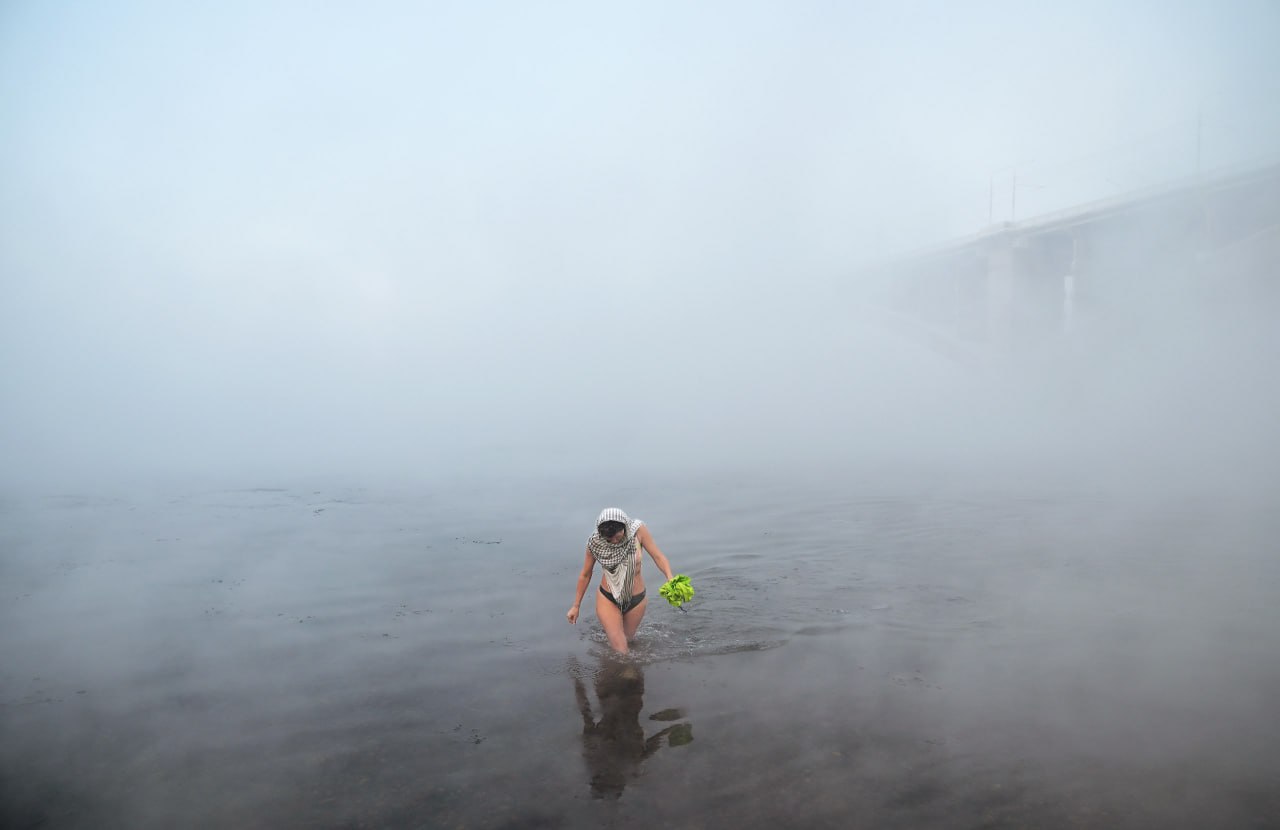 Массовое омовение в условиях экстремального холода Восточно-Сибирского антициклона — в фотогалерее «Ъ-Сибирь».