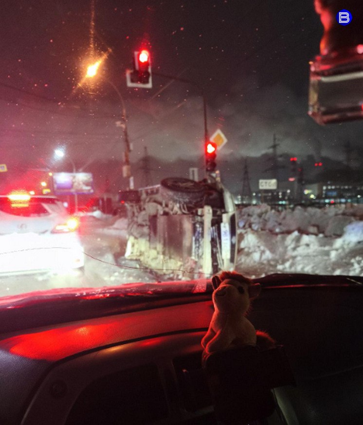 По фото с места аварии видно, что перевёртыш не нарушил автомобильное движение: машины едут как обычно.